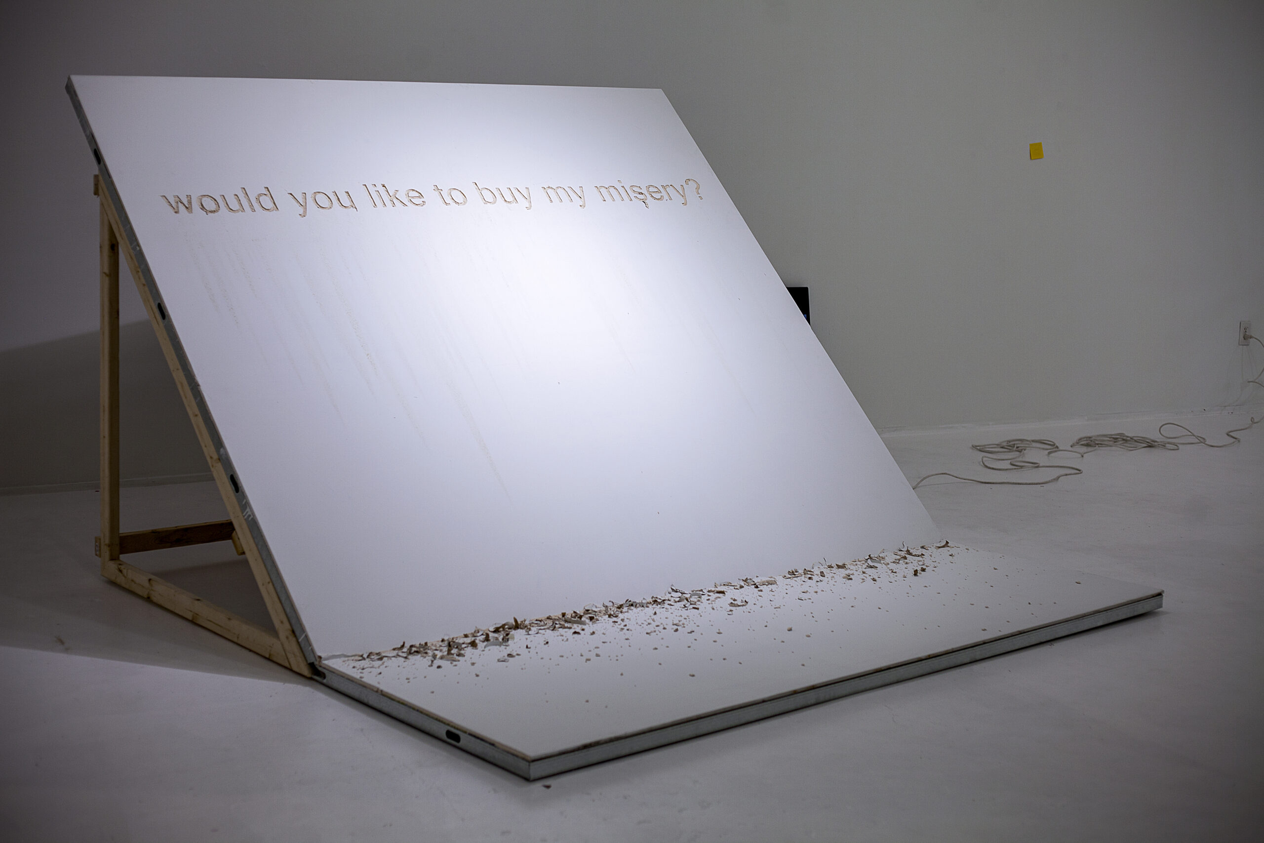 Este bajo relieve, instalado en la pared de la galería, fue concebido inicialmente como una ironía frente a la ansia desmedida del arte cubano por integrarse en el mercado artístico global y la visión que dicho mercado tiene sobre esta producción artística.